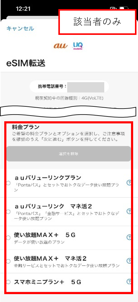 ご契約内容を確認の上、契約内容のご確認方法を選択し、「eSIM転送を申し込む」をタップしてください