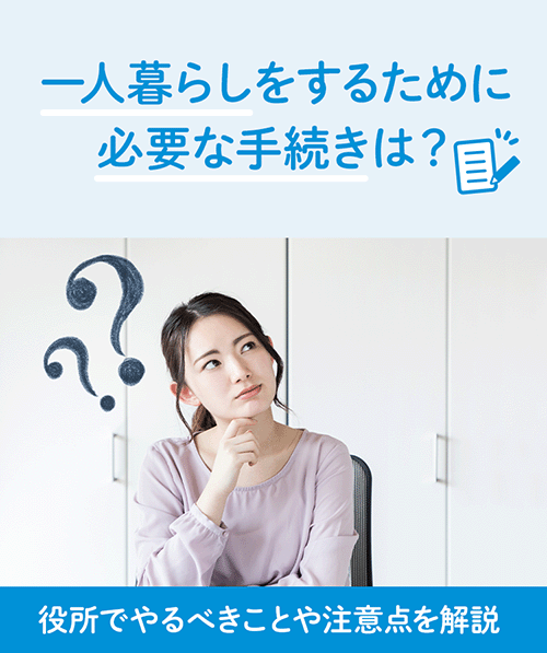 一人暮らしを始めるにあたり、引っ越し前にやっておくべき手続きがあります。進学や就職で一人暮らしを始める方は、事前に必要な手続きや注意点を知っておくと引っ越し作業や役所での手続きなどがスムーズに進みます。