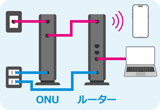 ONUとルーターをLANケーブルで接続したら、パソコンやスマホでルーターに接続します。