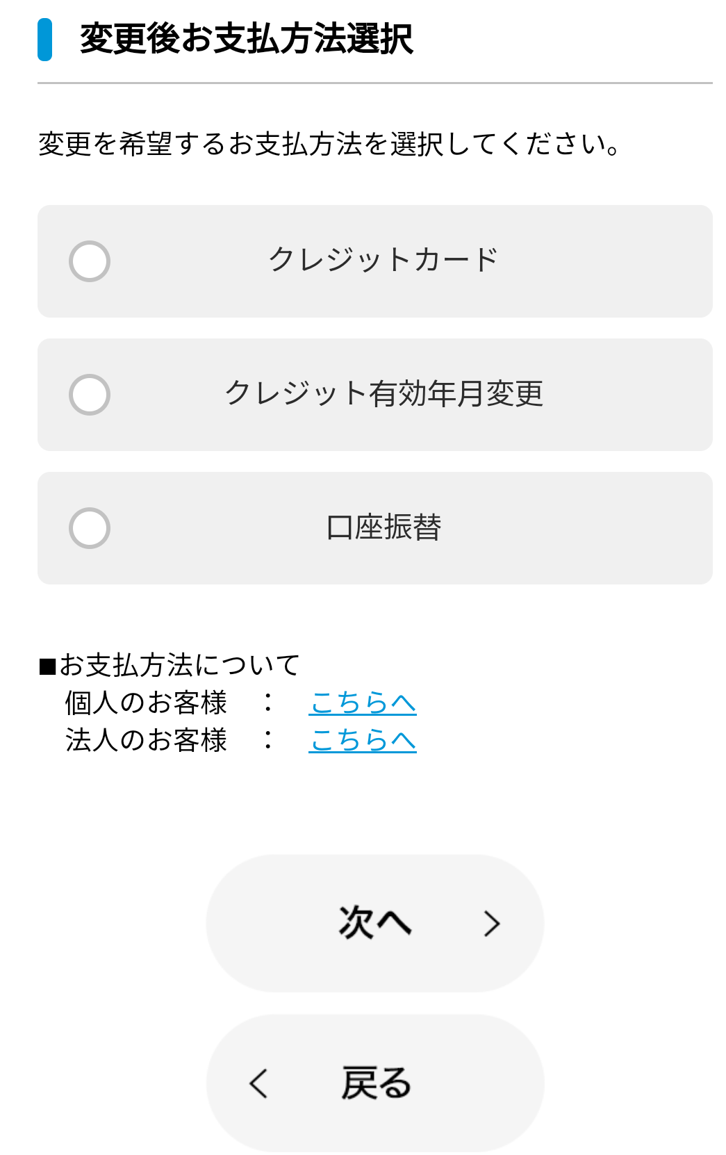 変更後のお支払い方法を選択いただき、手順に沿って進めてください。