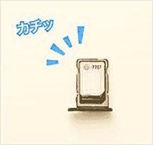 ※SIMカードの金属面を下にして、トレイの切り欠き方向にあわせて、カチッと音がするまで軽く押し込んでください。