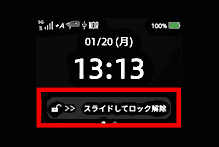 【3】ロック画面が表示されます。画面をスライドしてロックを解除します。